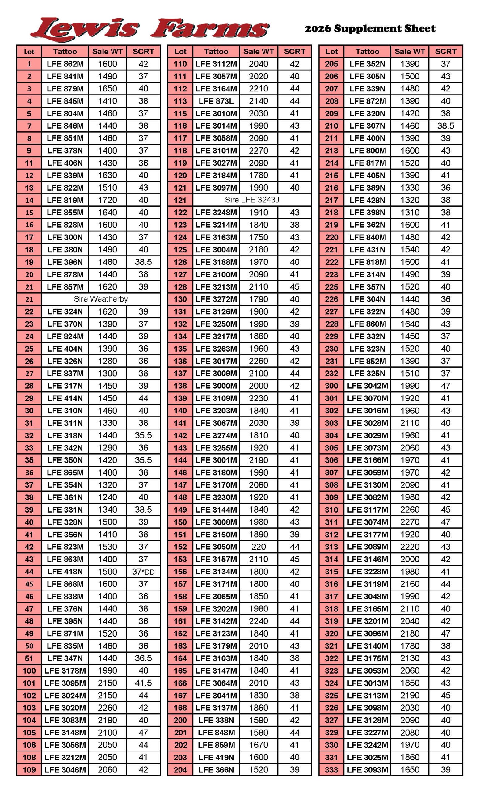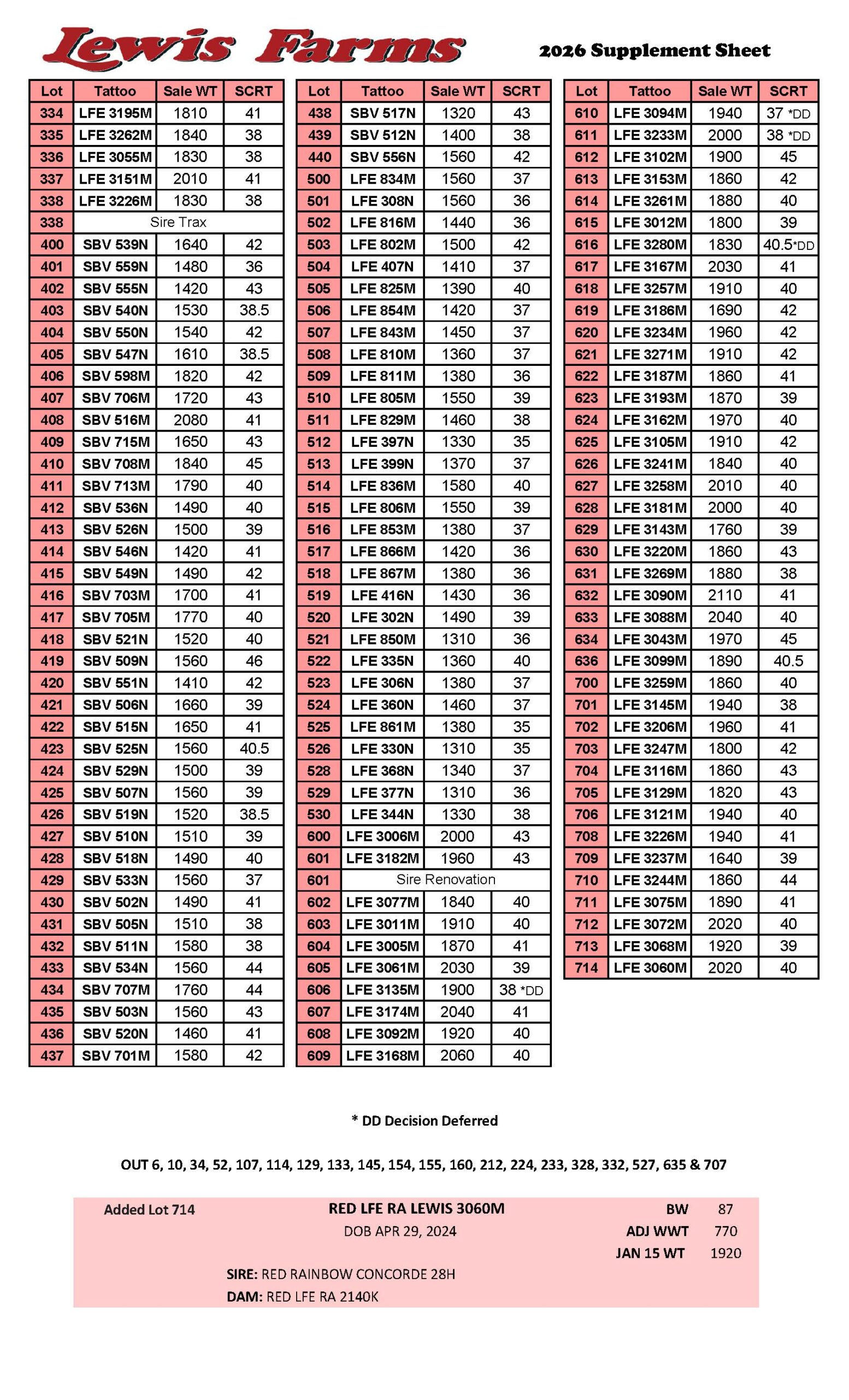 40th Annual Bull Sale – Supplement Sheet – Page 1 Page 2