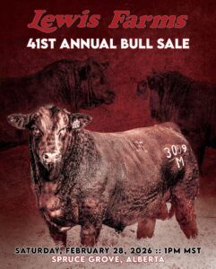 We invite you all to our 41th Annual Bull Sale. February 28, 2026. Spruce Grove, Alberta. 1:00 PM MST at the Farm